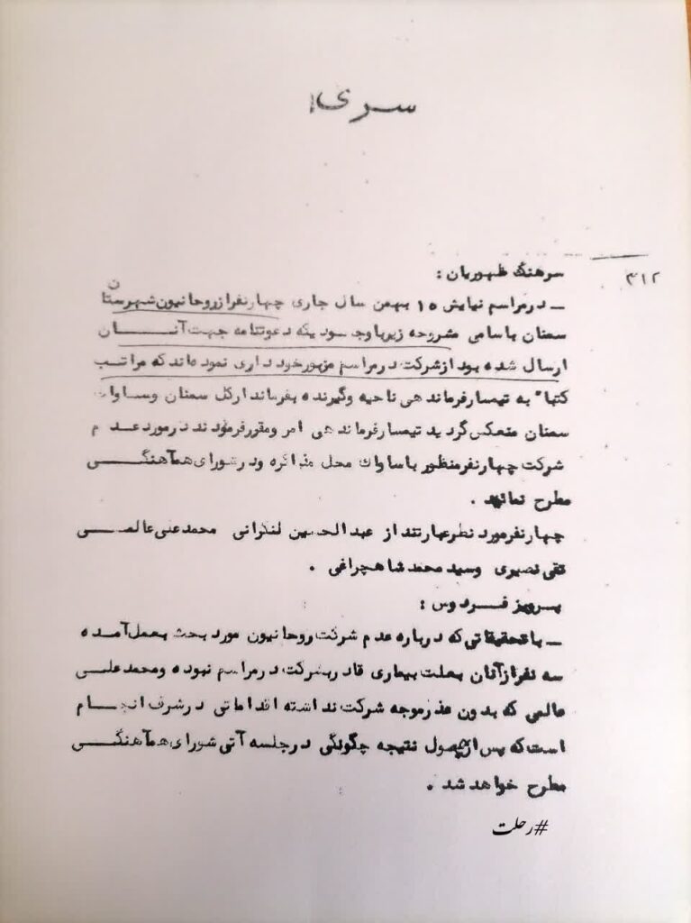 عدم شرکت ۴ نفر از روحانیون سمنان ، از جمله مرحوم سید محمد شاهچراغی در مراسم نیایش در سال ۱۳۵۲ در سمنان وقتی ۳۹ سال داشتند