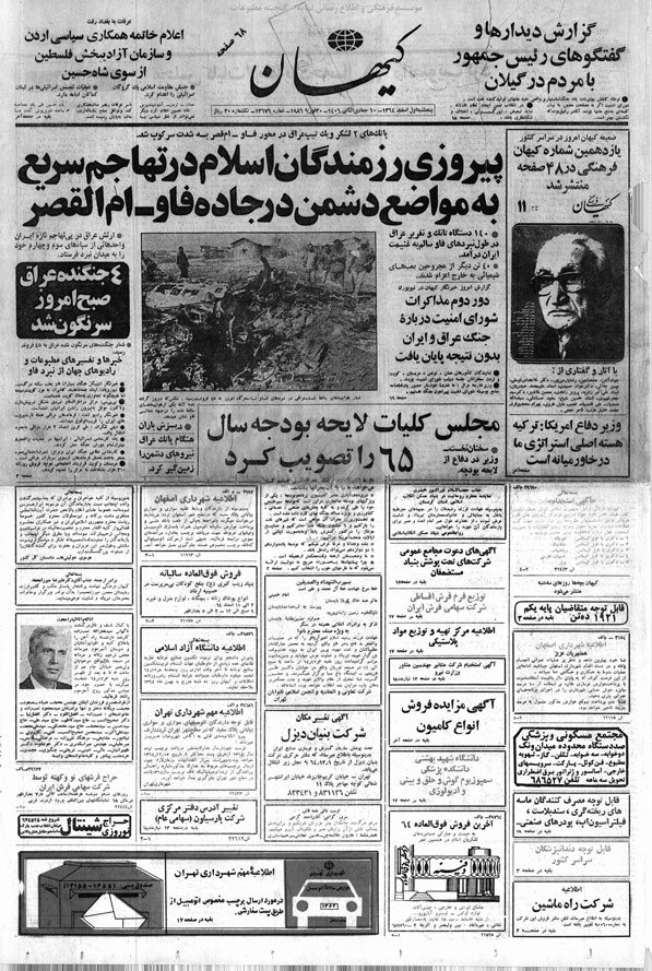 تصویر روزنامه اطلاعات تصویر روزنامه کیهان تصویر روزنامه جمهوری اسلامی مطالب مرتبط: چهل سال پیش در چنین روزی: 1 اسفند ۱۳۵۸ چهل سال پیش در چنین روزی: 2 اسفند ۱۳۵۸ چهل سال پیش در چنین روزی: 4 اسفند ۱۳۵۸ چهل سال پیش در چنین روزی: 5 اسفند ۱۳۵۸