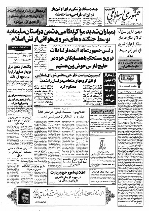 تصویر روزنامه اطلاعات تصویر روزنامه کیهان Upload Image... تصویر روزنامه جمهوری اسلامی مطالب مرتبط: چهل سال پیش در چنین روزی: ا دی 1364 چهل سال پیش در چنین روزی: 2 دی 1364 چهل سال پیش در چنین روزی: 3 دی 1364 چهل سال پیش در چنین روزی: 4 دی 1364