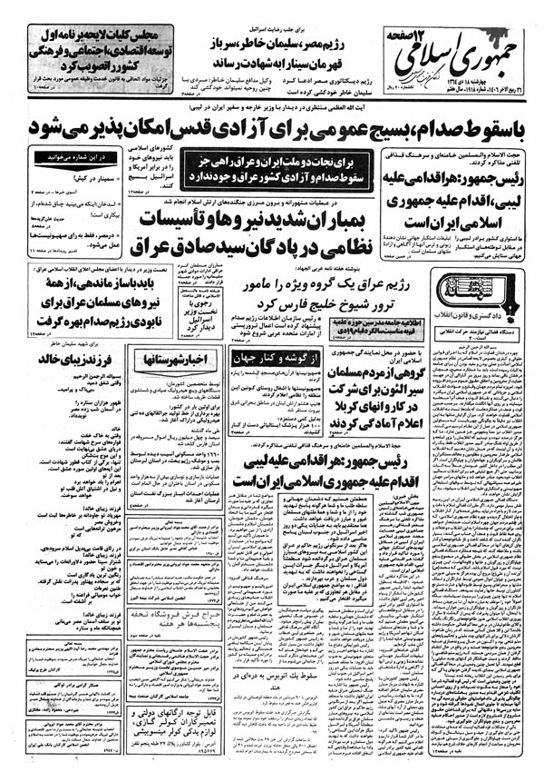 تصویر روزنامه اطلاعات تصویر روزنامه کیهان Upload Image... تصویر روزنامه جمهوری اسلامی مطالب مرتبط: چهل سال پیش در چنین روزی: ا دی 1364 چهل سال پیش در چنین روزی: 2 دی 1364 چهل سال پیش در چنین روزی: 3 دی 1364 چهل سال پیش در چنین روزی: 4 دی 1364