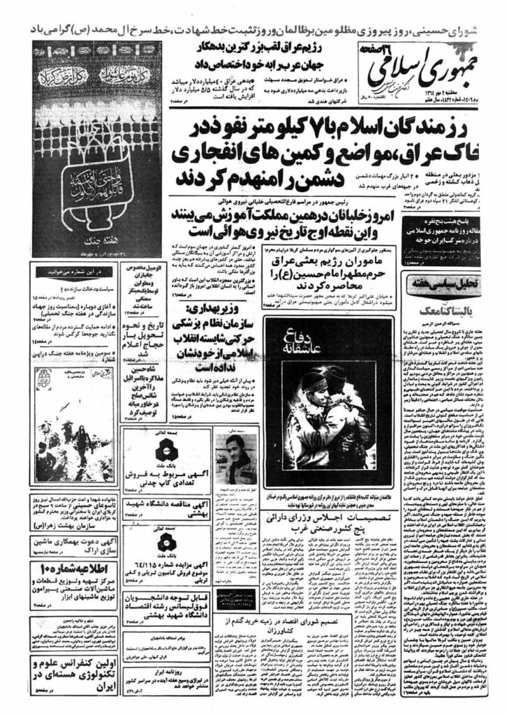 تصویر روزنامه اطلاعات تصویر روزنامه کیهان Upload Image... تصویر روزنامه جمهوری اسلامی مطالب مرتبط: چهل سال پیش در چنین روزی: ۱ مهر ۱۳۵۸ چهل سال پیش در چنین روزی: 2 مهر ۱۳۵۸ چهل سال پیش در چنین روزی: 3 مهر ۱۳۵۸ چهل سال پیش در چنین روزی: 4 مهر ۱۳۵۸