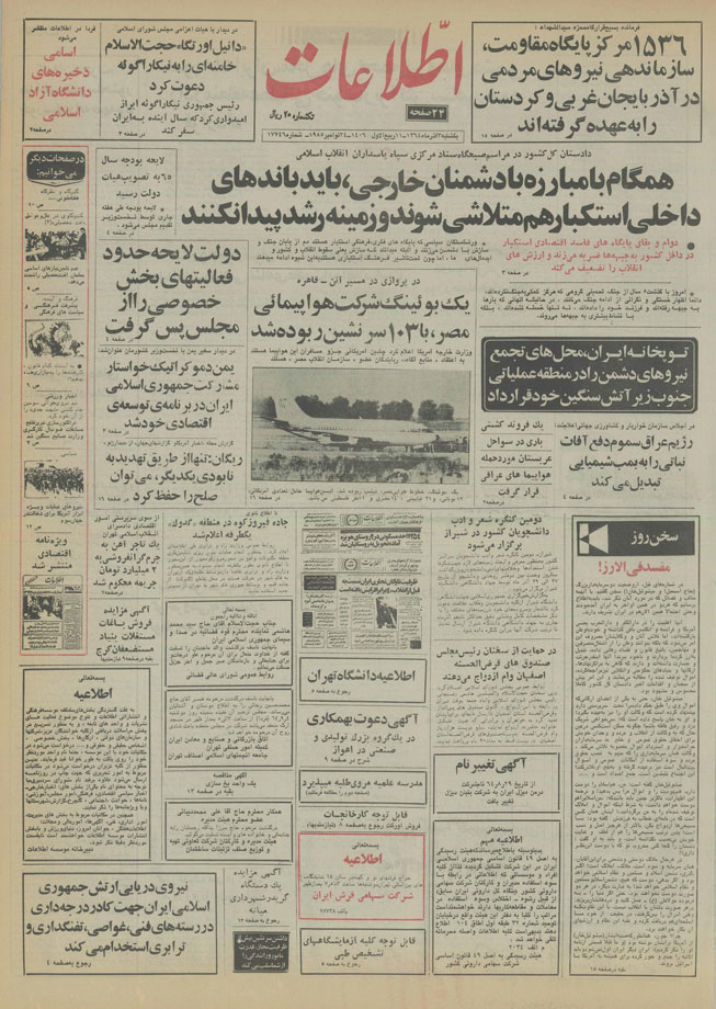 تصویر روزنامه اطلاعات تصویر روزنامه کیهان Upload Image... تصویر روزنامه جمهوری اسلامی مطالب مرتبط: چهل سال پیش در چنین روزی: 2 آذر 1364 چهل سال پیش در چنین روزی: 1 آذر ۱۳۵۸ چهل سال پیش در چنین روزی: ۳ آذر ۱۳۵۸ چهل سال پیش در چنین روزی: 4 آذر ۱۳۵۸