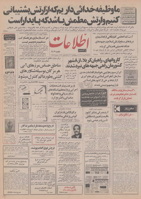 تصویر روزنامه اطلاعات تصویر روزنامه کیهان Upload Image... تصویر روزنامه جمهوری اسلامی مطالب مرتبط: چهل سال پیش در چنین روزی: ا دی 1364 چهل سال پیش در چنین روزی: 2 دی 1364 چهل سال پیش در چنین روزی: 1 دی ۱۳۵۸ چهل سال پیش در چنین روزی: 2 دی ۱۳۵۸