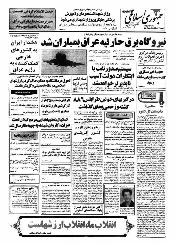 تصویر روزنامه اطلاعات تصویر روزنامه کیهان Upload Image... تصویر روزنامه جمهوری اسلامی مطالب مرتبط: چهل سال پیش در چنین روزی: 6 مهر 1364 چهل سال پیش در چنین روزی: 2 مهر 1364 چهل سال پیش در چنین روزی: 7 مهر 1364 چهل سال پیش در چنین روزی: ۱ مهر ۱۳۵۸