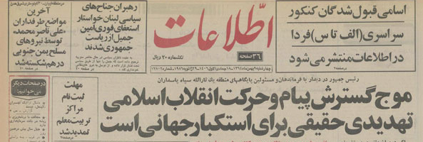ارسال شده در : 1364, چهل سال پیش در چنین روزی  |  برچسب: بهمن, روزنامه اطلاعات, روزنامه جمهوری اسلامی, روزنامه کیهان ارسال دیدگاه